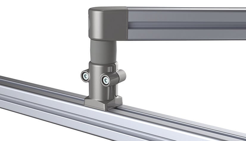 Anschluss-Seite kann längs oder quer auf die Profilnut geschraubt werden, Friktionsachse ist damit rechtwinkelig zum Profil positioniert;