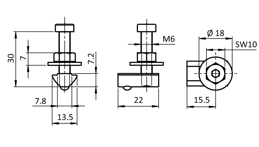 1 Nutenstein - Nut 8 - M6,