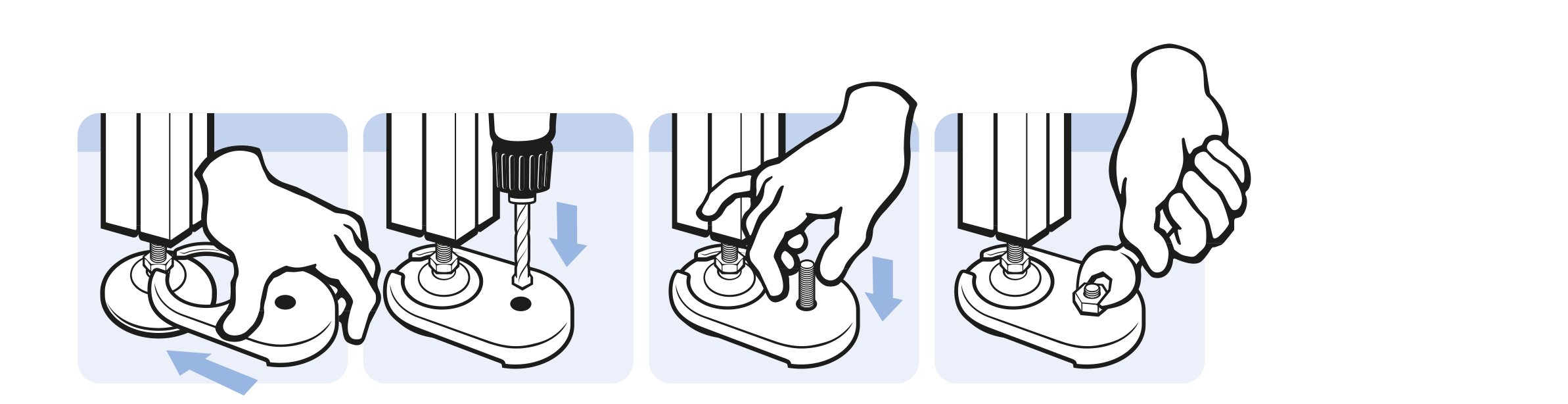 zur sicheren Befestigung des Trapezstellfußes am Boden, nachträgliche Montage möglich