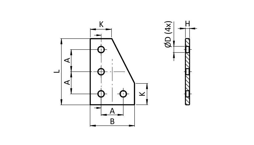 ECO-Verbinderplatte AL L 4-Loch, 1 Nut