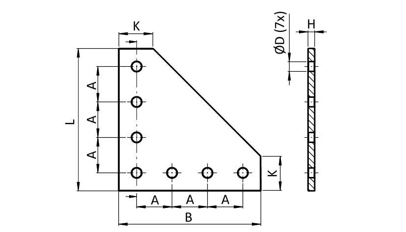 ECO-Verbinderplatte AL L 7-Loch, 1 Nut