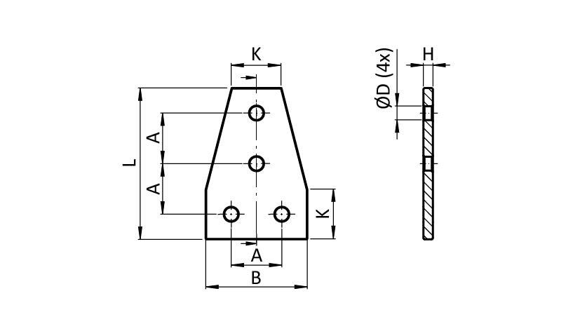 ECO-Verbinderplatte AL T 4-Loch, 1 Nut