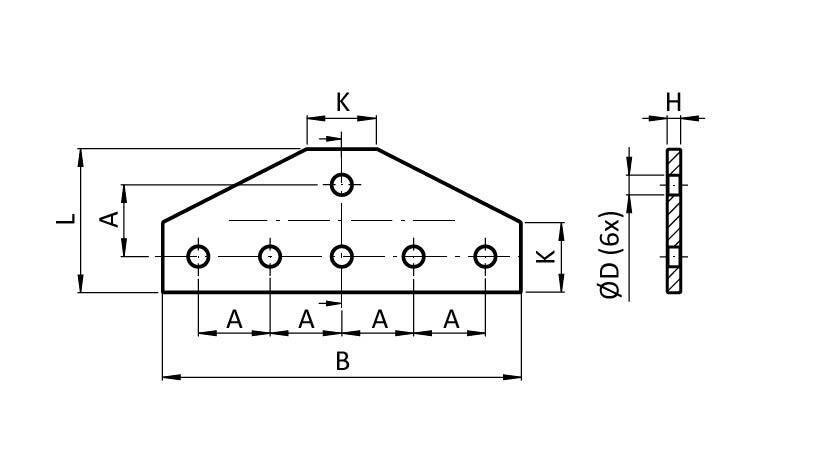 ECO-Verbinderplatte AL T 6-Loch, 1 Nut