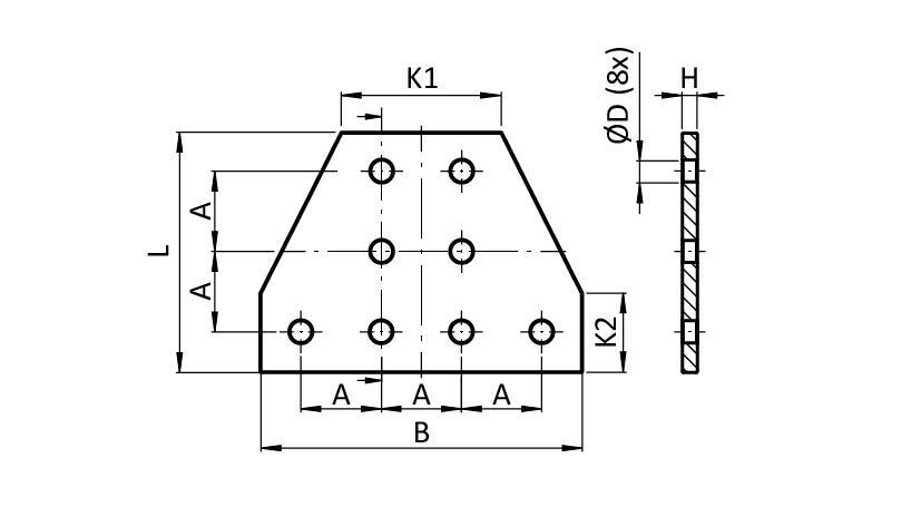 ECO-Verbinderplatte AL T 8-Loch, 1 Nut x 2 Nuten