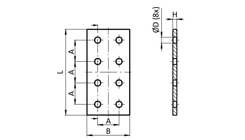 ECO-Verbinderplatte AL rechteckig 8-Loch, 2 Nuten