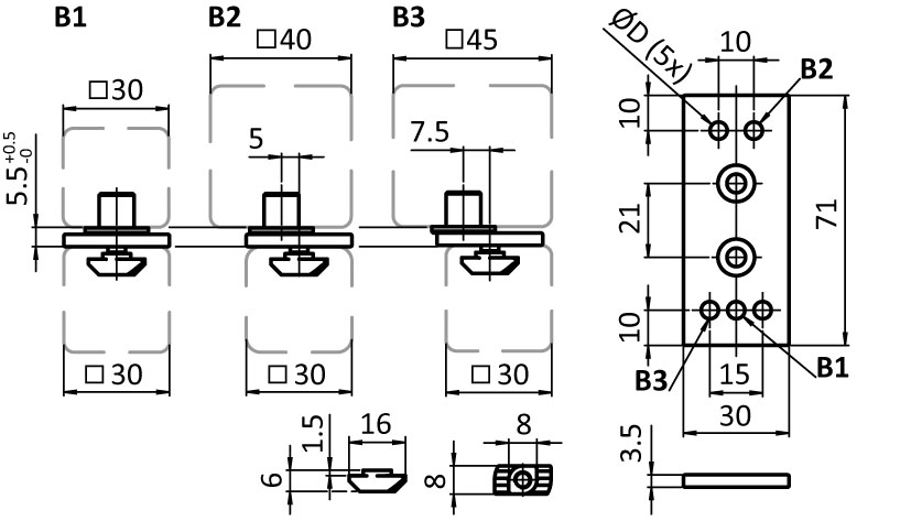 zur Montage von Falttüren mit gleichzeitiger Dreh- und Gleitbewegung; Führungsbuchse für Nut 8 oder Nut 10 in unterschiedlichen Positionen einsteckbar; hochwertige Ausführung