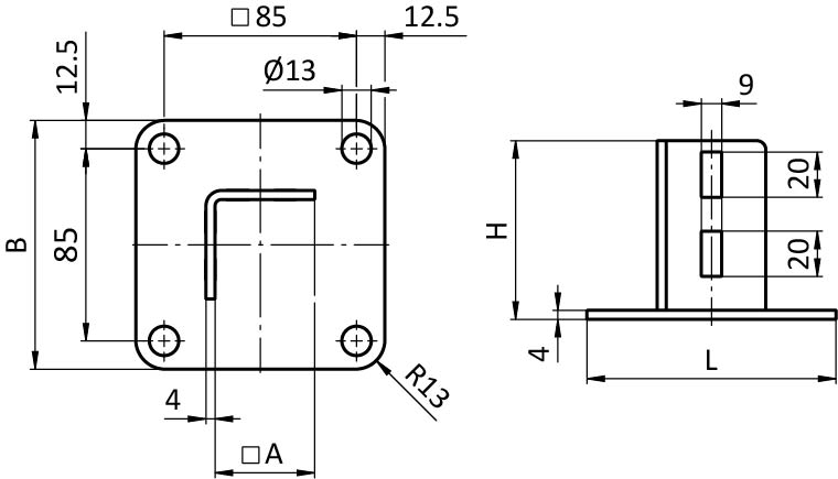 für die Aufnahme von Profilen, um Pfosten zu setzen