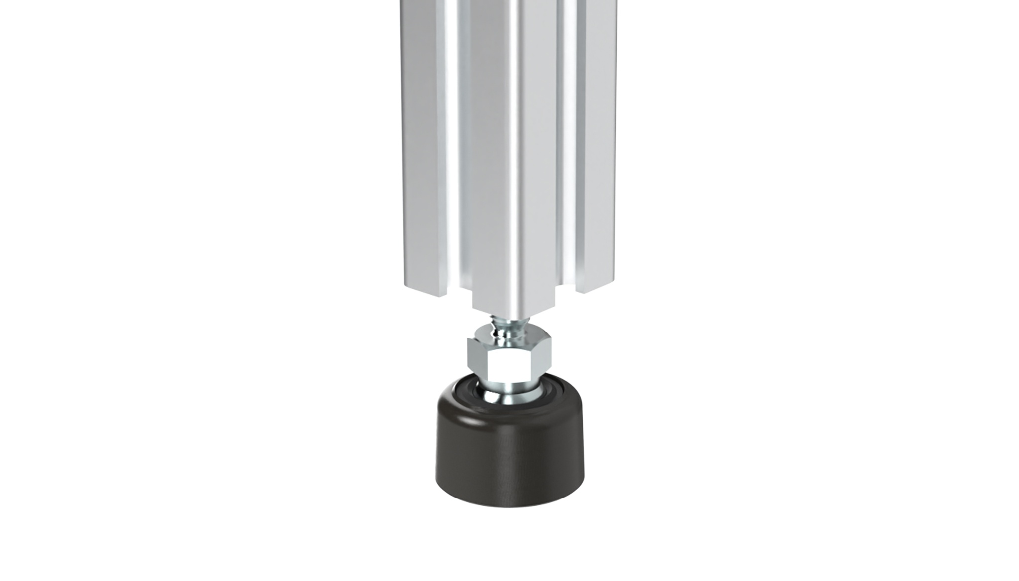schwenkbarer, nivellierbarer Stellfuß zum Ausgleich von Bodenunebenheiten