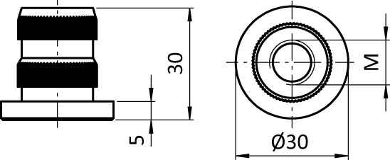 zur Befestigung von Stellfüßen und Bodenrollen an der Stirnseite von Rundrohrprofilen mit Außendurchmesser Ø 30 mm