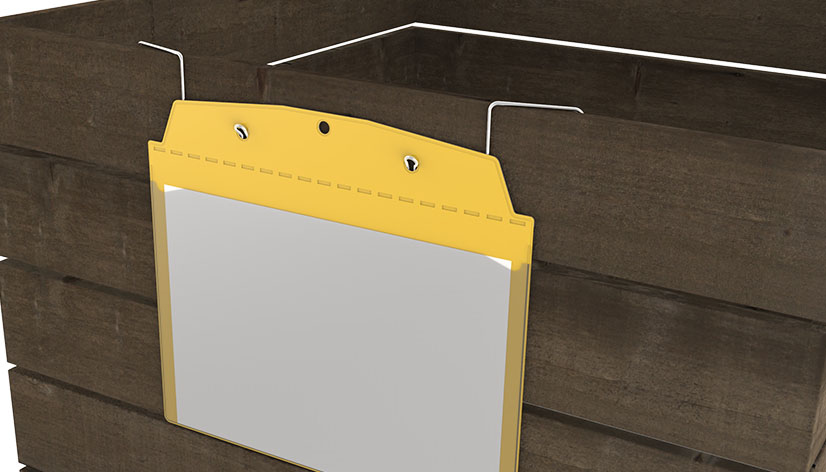 Universeller Drahtbügel zum Überhängen an Kleinladungsträgern und anderen Behältern, zum Befestigen von Anhänge-Sichttaschen