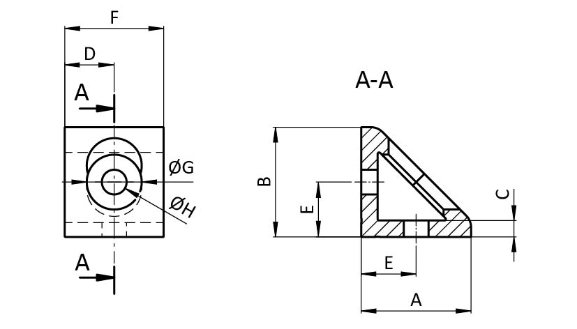 Knoten-Verbindungswinkel AL 2-Loch, 1 Nut
