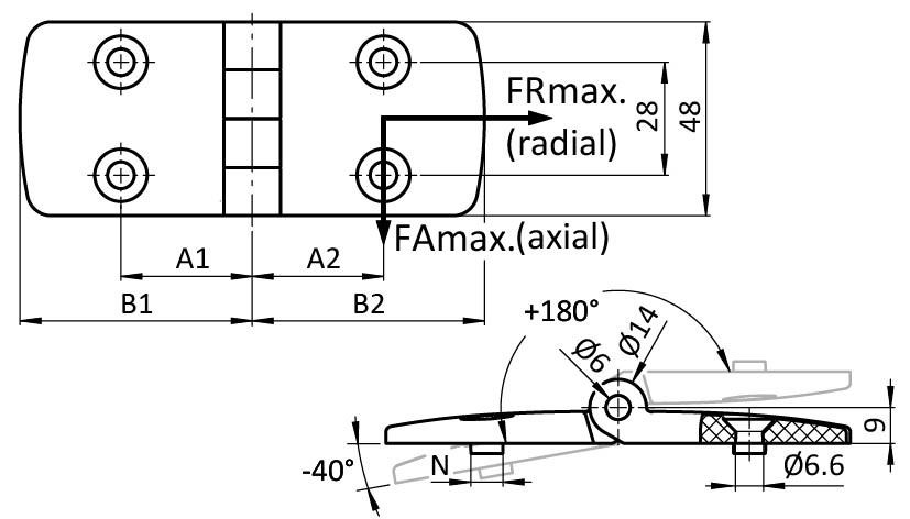 Produktinformationen "Kunststoff-Kombischarnier 60, nicht aushängbar, schwarz"