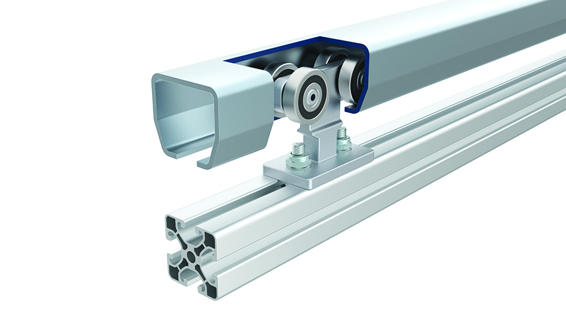 zum Bau von Mitnehmerwagen mit Aluminiumprofil 40, für das Abhängen von Kabeln oder Leitungen können optionale Werkzeuggleiter in die Nut des Aluminiumprofils eingesetzt werden;