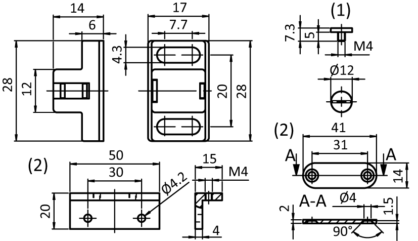 1 Halteplatte 14 x 41 x 2 mm,