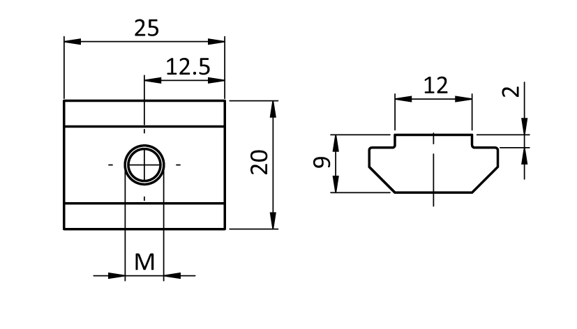 | Modell: | Nut 12, mit Führungssteg, Stahl |