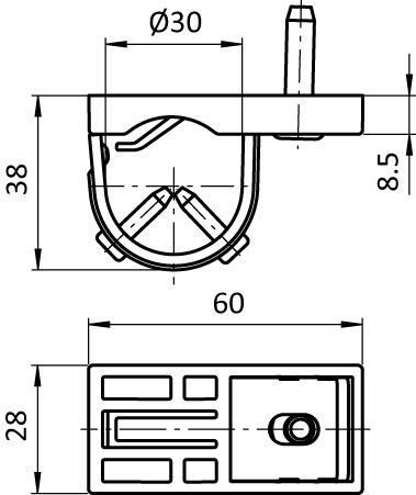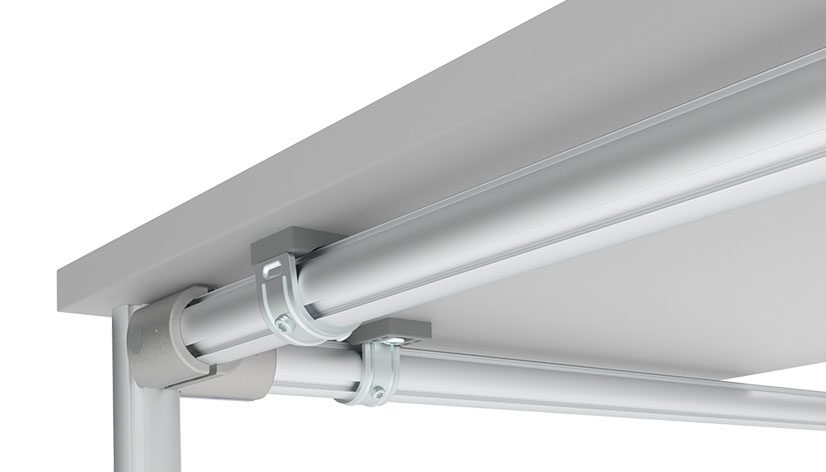 Zur Befestigung von Holzplatten auf einem Rahmen aus Rundrohrprofilen Außendurchmesser Ø 30 mm