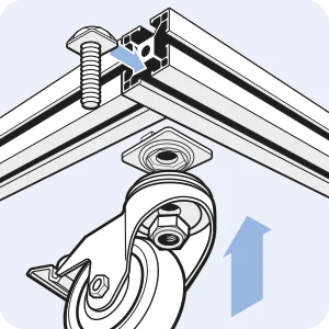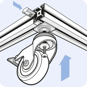 Diese robusten Varianten rollen auch auf Böden mit Unebenheiten optimal ab, sind laufruhig und bleiben in der Spur. Erhältlich sind die Schwerlastrollen mit Radkörpern aus Kunststoff oder mit Felgen aus Aluminium für extreme Belastungen. Die Lenkrollen gibt es mit und ohne Doppelfeststeller, die Bockrollen haben keine Feststeller. Befestigt werden die Lenkgehäuse bzw. Bockgehäuse der Schwerlastrollen direkt am Aluprofil Rastermaß 80 mm und 90 mm.