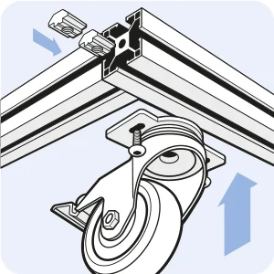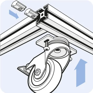 Befestigt werden die FATH Lenk- und Bockrollen entweder in konventioneller Form mit speziellen Adapterplatten oder mit integrierten Montageplatten. Damit ist eine schnelle, verdrehgesicherte Montage an Aluprofilen mit Rastermaß 38 mm – 1.5“, 40 mm und 45 mm und bei Schwerlastrollen an Aluprofilen mit Rastermaß 80 mm und 90 mm sichergestellt – formschlüssig ohne seitlichen Überstand.