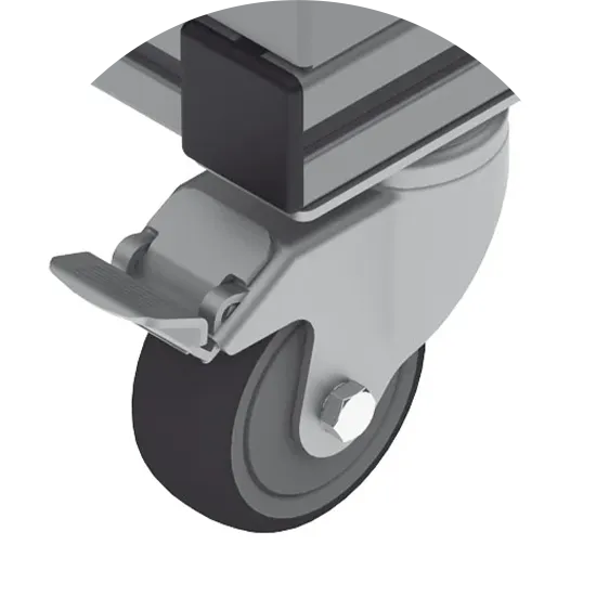 - Alle Lenkrollen mit Doppelfeststeller