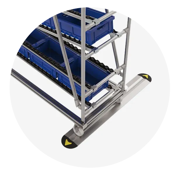 Die Parkschienen sichern die Bodenroller gegen unbeabsichtigtes Wegrollen. Beim Befüllen oder der Entnahme von Material werden die