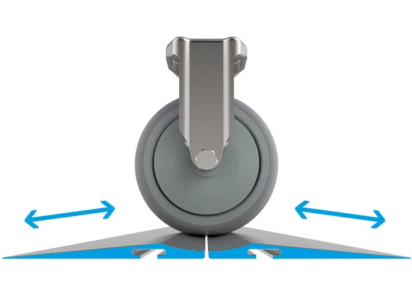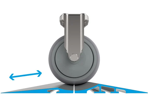 Wägen zuverlässig in der Position gehalten – selbst bei unebenen Böden, ohne Feststeller an den Rollen. Fahr- und Gehwege bleiben frei