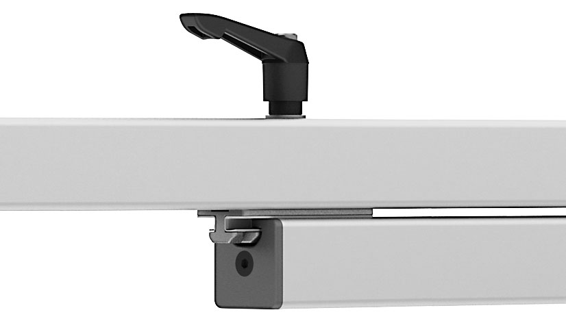 zur gleitenden Führung von Profilen mit Nut 8; zusätzliche Klemmung des Schlittens erweitert die Einsatzmöglichkeiten, z. B. als verstellbarer Endanschlag;