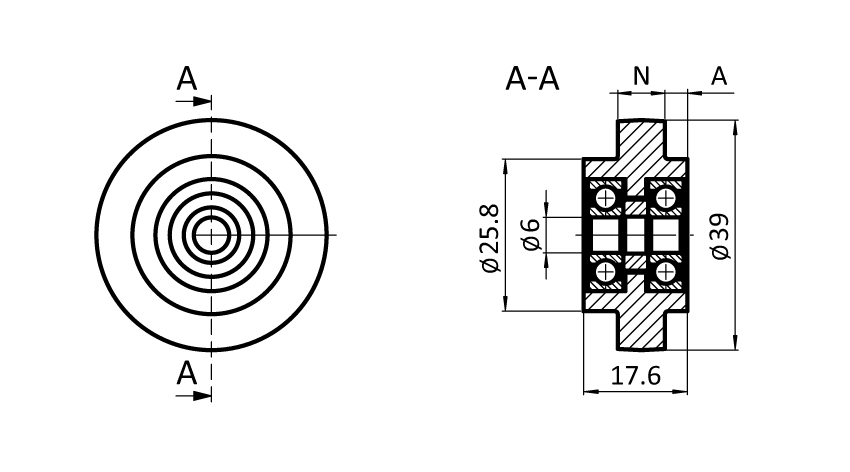 Produktinformationen "Rolle Ø 39 für Nutprofile"