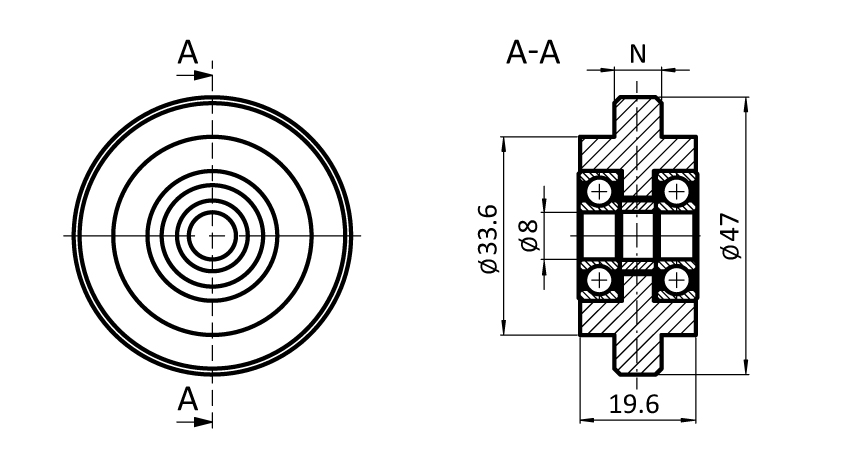 Rolle Ø 47 für Nutprofile