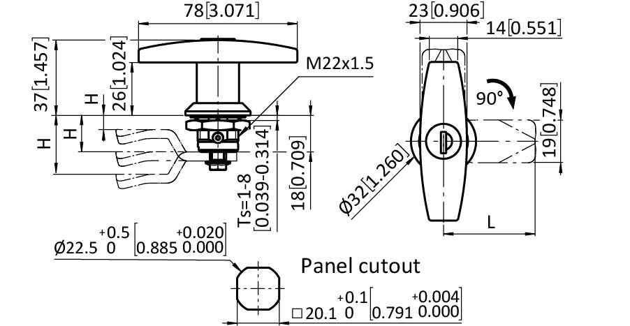 Produktinformationen "T-Griff Drehriegel 25 / 18"
