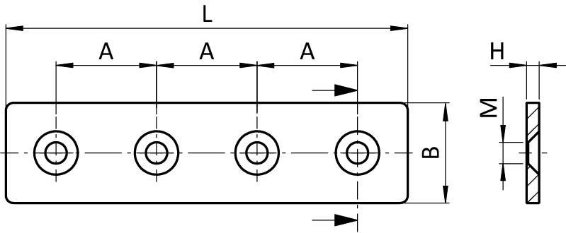 Verbinderplatte ST rechteckig 4-Loch, 1 Nut