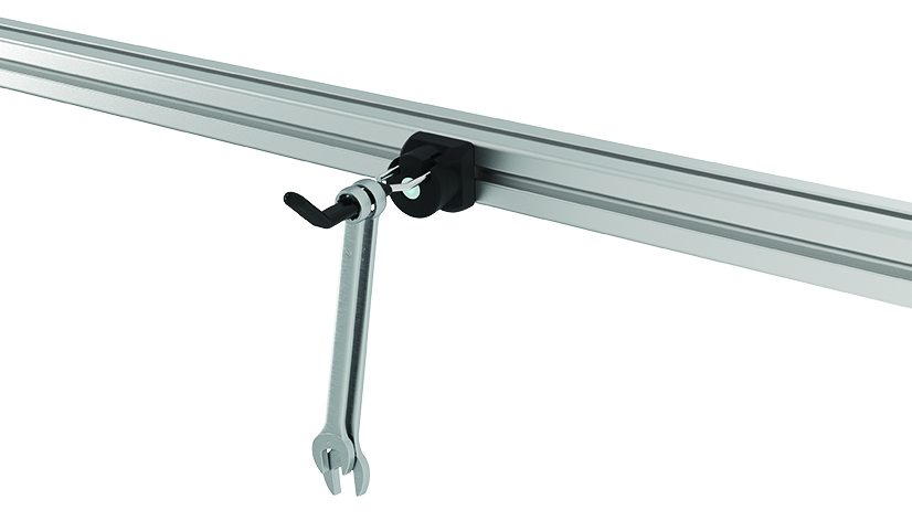 einsatzfertiger Werkzeughaken, 360° drehbar, für Aluminiumprofil;