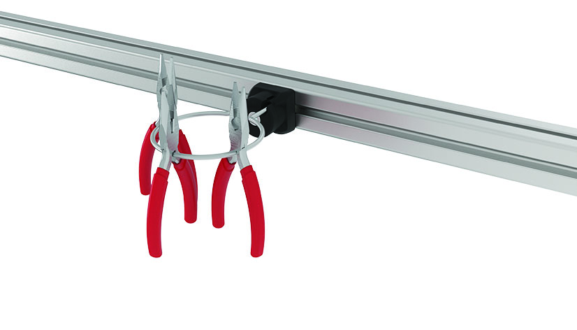 einsatzfertiger Werkzeughalter-Ring mit Durchmesser 80 mm, 360° drehbar, für Aluminiumprofile;