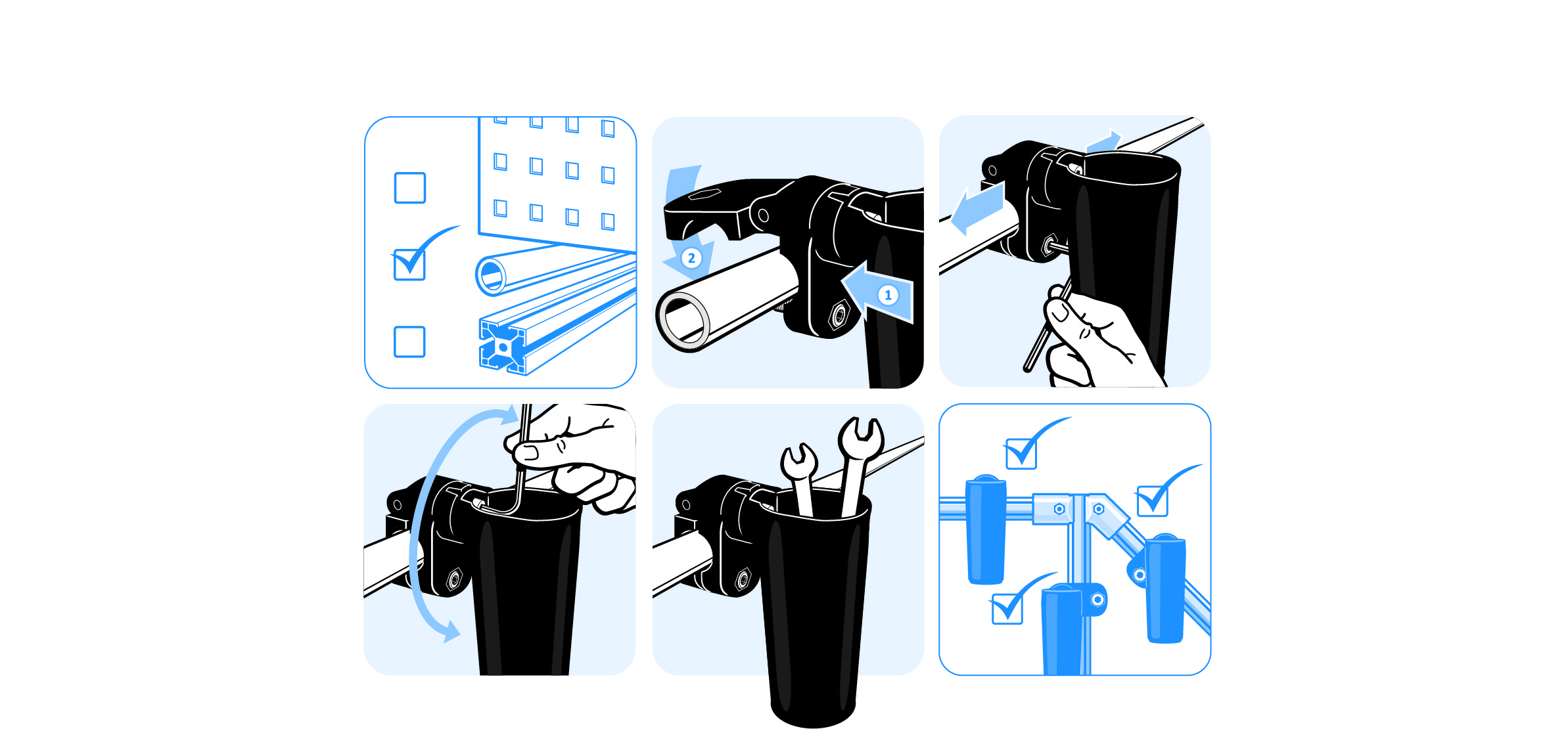 einsatzfertiger Werkzeugköcher, Ø 50 mm Außendurchmesser, 360°drehbar, für Rundrohre oder Rundrohrprofile;