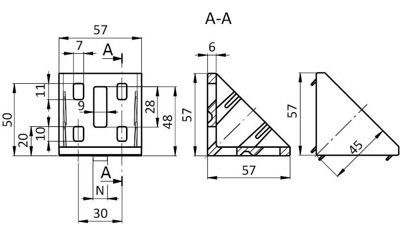 zur rechtwinkligen Verbindung von Profilen und Flächenelementen; die offene Seite des Winkels kann durch die Abdeckkappe verschlossen werden