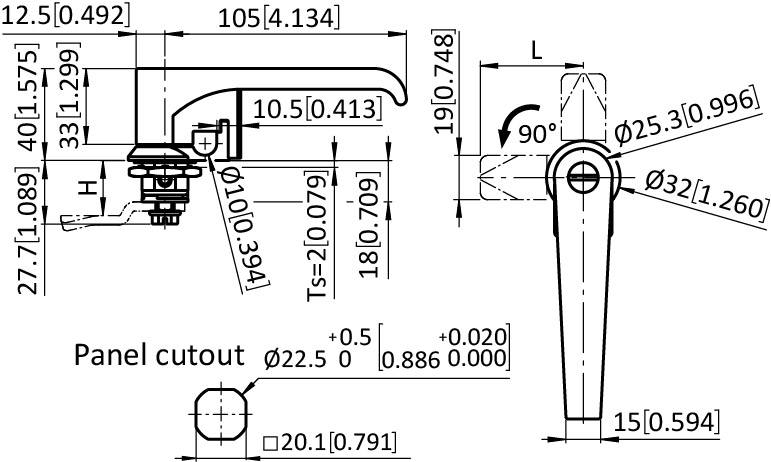 Zylinder-L-Griff Vorhängeschloss-Drehriegel 22,5 / 18