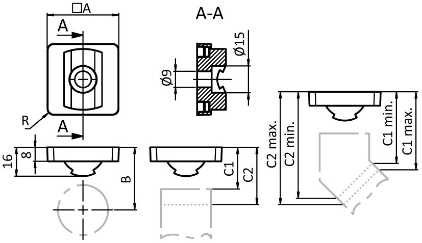 To connect tubular frame profiles with slot 8 or 10 aluminum profiles