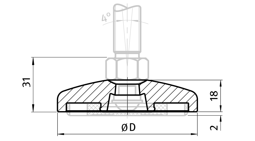 As factory assembled leveling foot on request