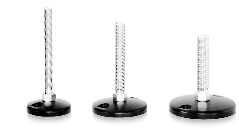 A leveling foot which can be fixed to the floor