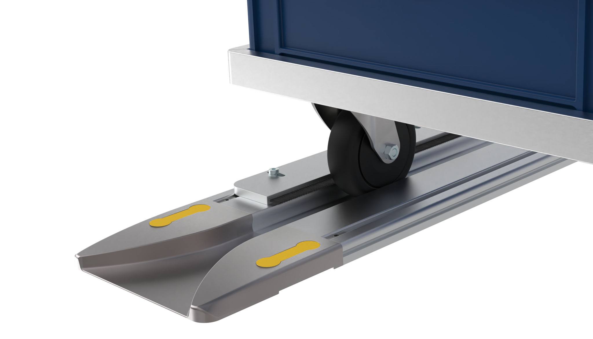 For braking and stopping dollies in guiding rails;