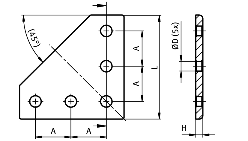Connection Plate AL L 5 Hole, 1 Slot Version