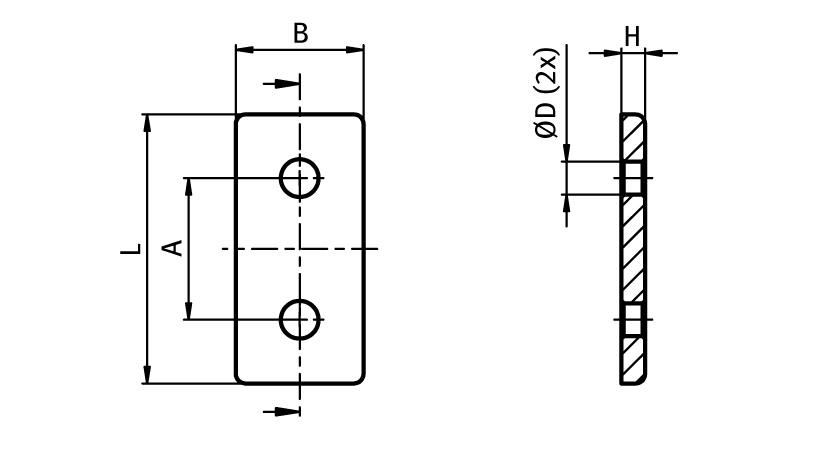 Connection Plate AL Rectangular 2 Hole, 1 Slot Version