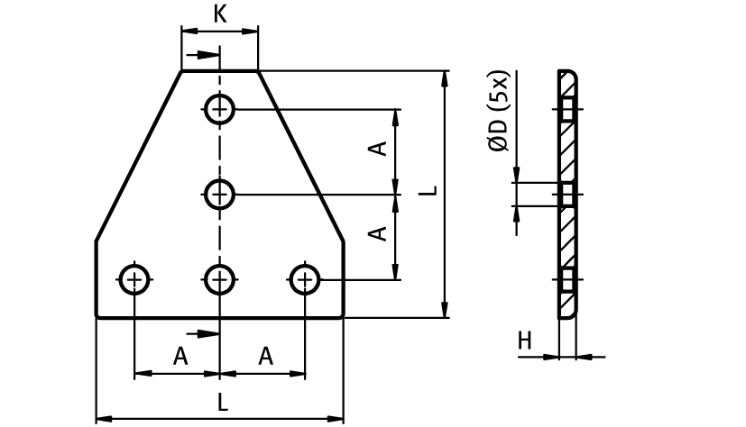 Connection Plate AL T 5 Hole, 1 Slot Version