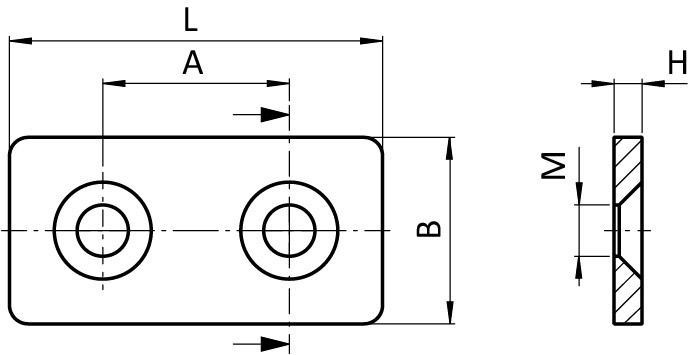 Connection Plate ST Rectangular 2 Hole, 1 Slot Version