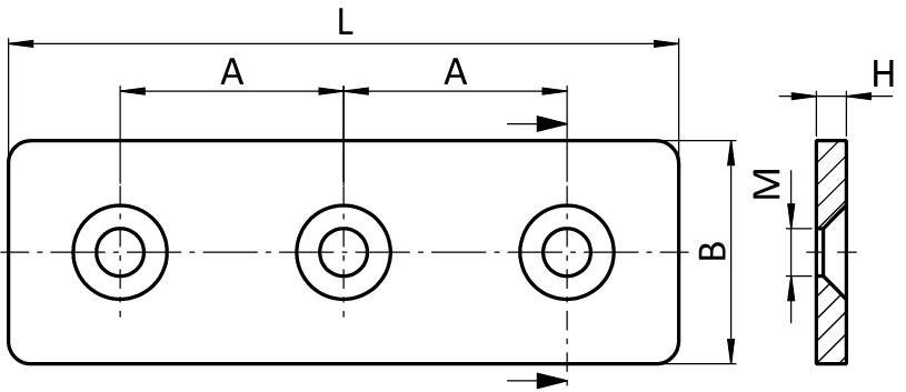 Connection Plate ST Rectangular 3 Hole, 1 Slot Version