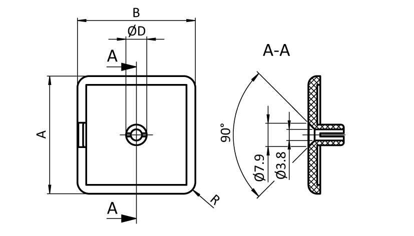| Fastening: | With screw DIN EN ISO 10642 (DIN 7991) - M4 x 16 |