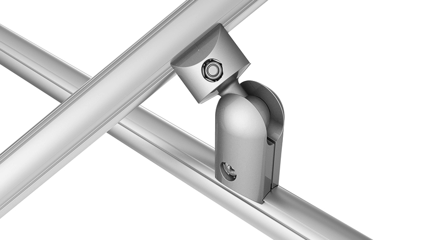 To cross connect two tubular frame profiles with Ø 30 mm outer diameter at variable angles, with pre-centering; completely pre-assembled set