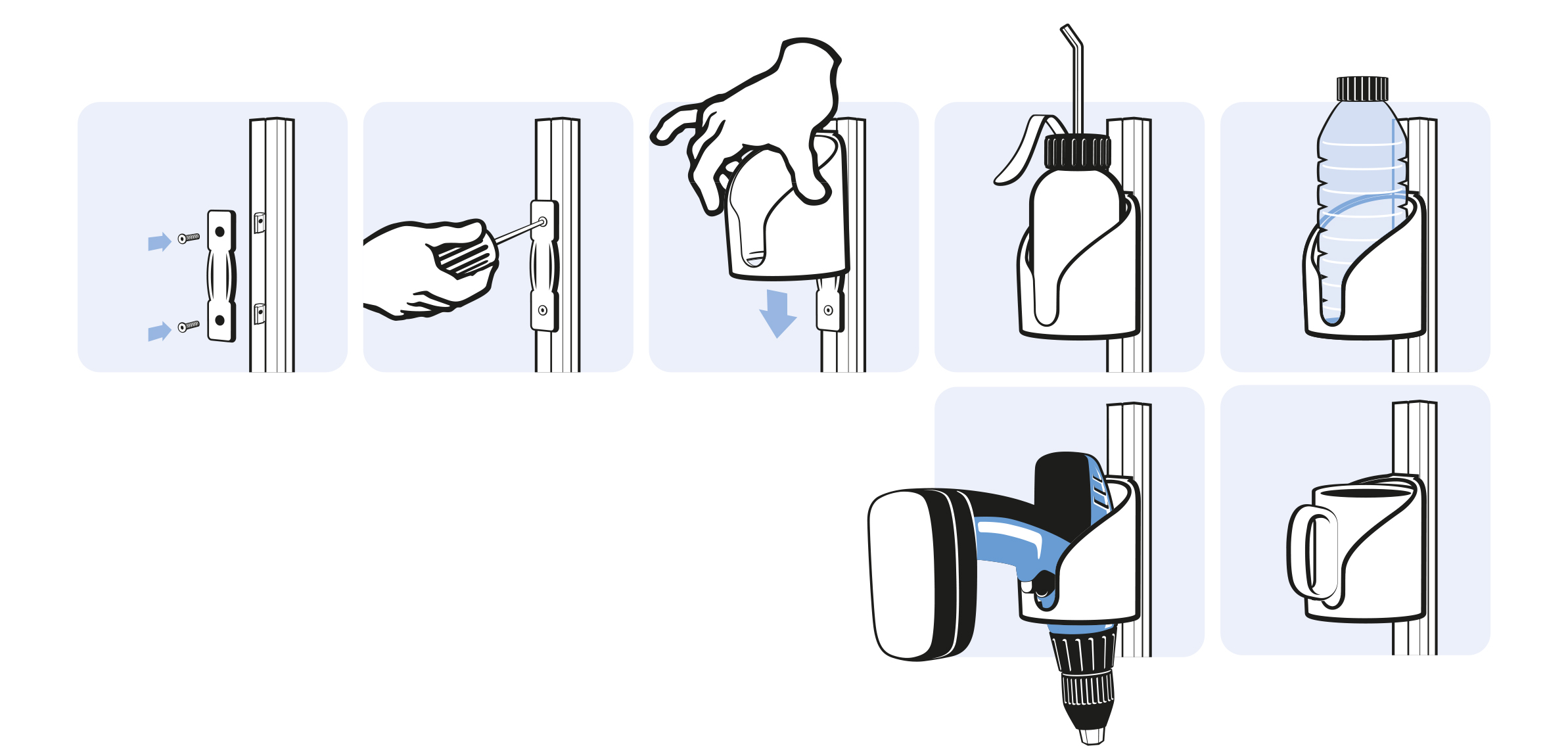 To securely put down a bottle, can or cup, or to park a tool (e.g. a drill)