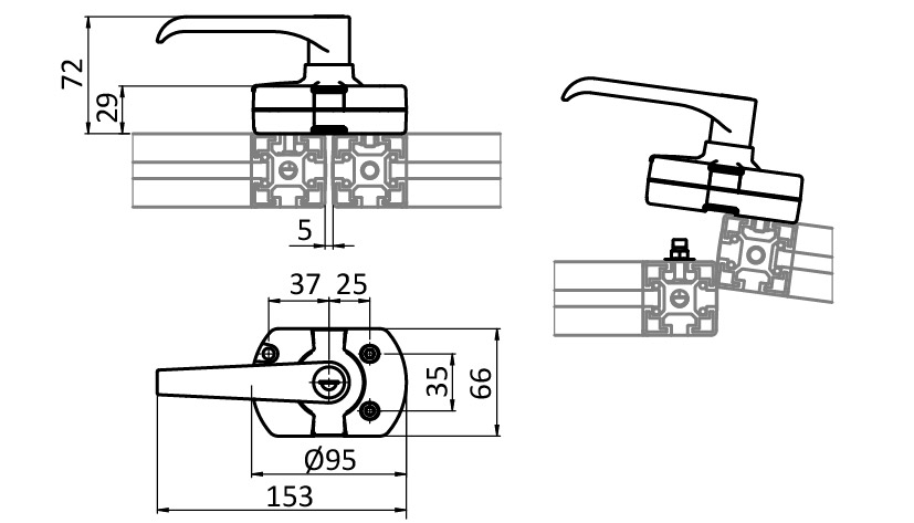 For an easy and secure latching and locking of swing and sliding doors, no mechanical preparation needed for the assembly