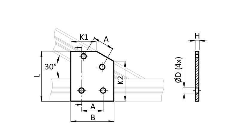 ECO Connection Plate AL 30° 4 Hole, 1 Slot Version