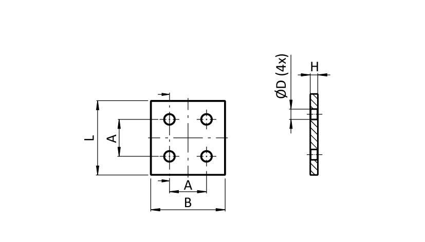 ECO Connection Plate AL Quadrangular 4 Hole, 1 Slot Version